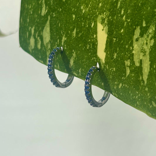 Midnight Blue Zirconia Silver Mini Huggie Earrings