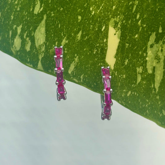 Lilac Abstract Zirconia Silver Huggie Earrings