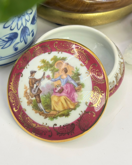 Limoges France Miniature Burgundy Trinket Box