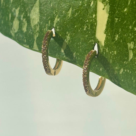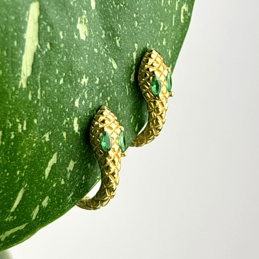 Green Mini Snake Zirconia Gold Huggie Earrings