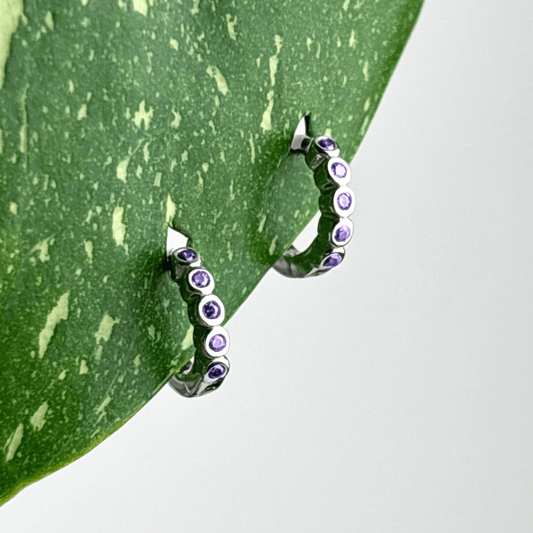 Lilac Bubble Zirconia Silver Mini Huggie Earrings