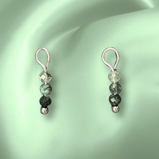 Moss Agate Triple Dew Drop Crystal Earring Charms