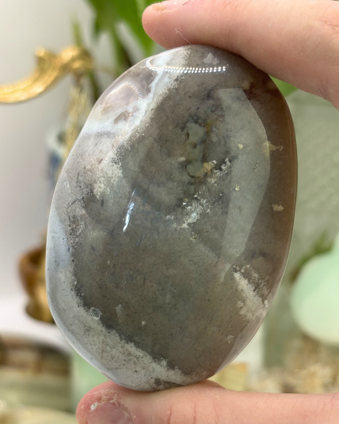 Black Flower Agate Palm Stone 1