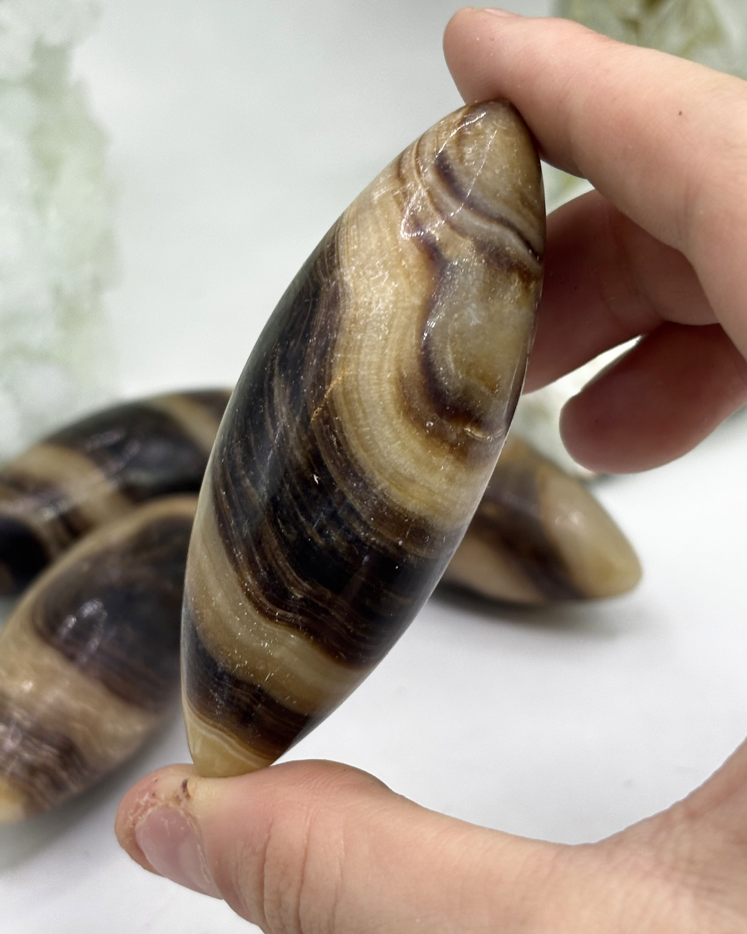 Chocolate Calcite Palm Stone / Shiva Lingham