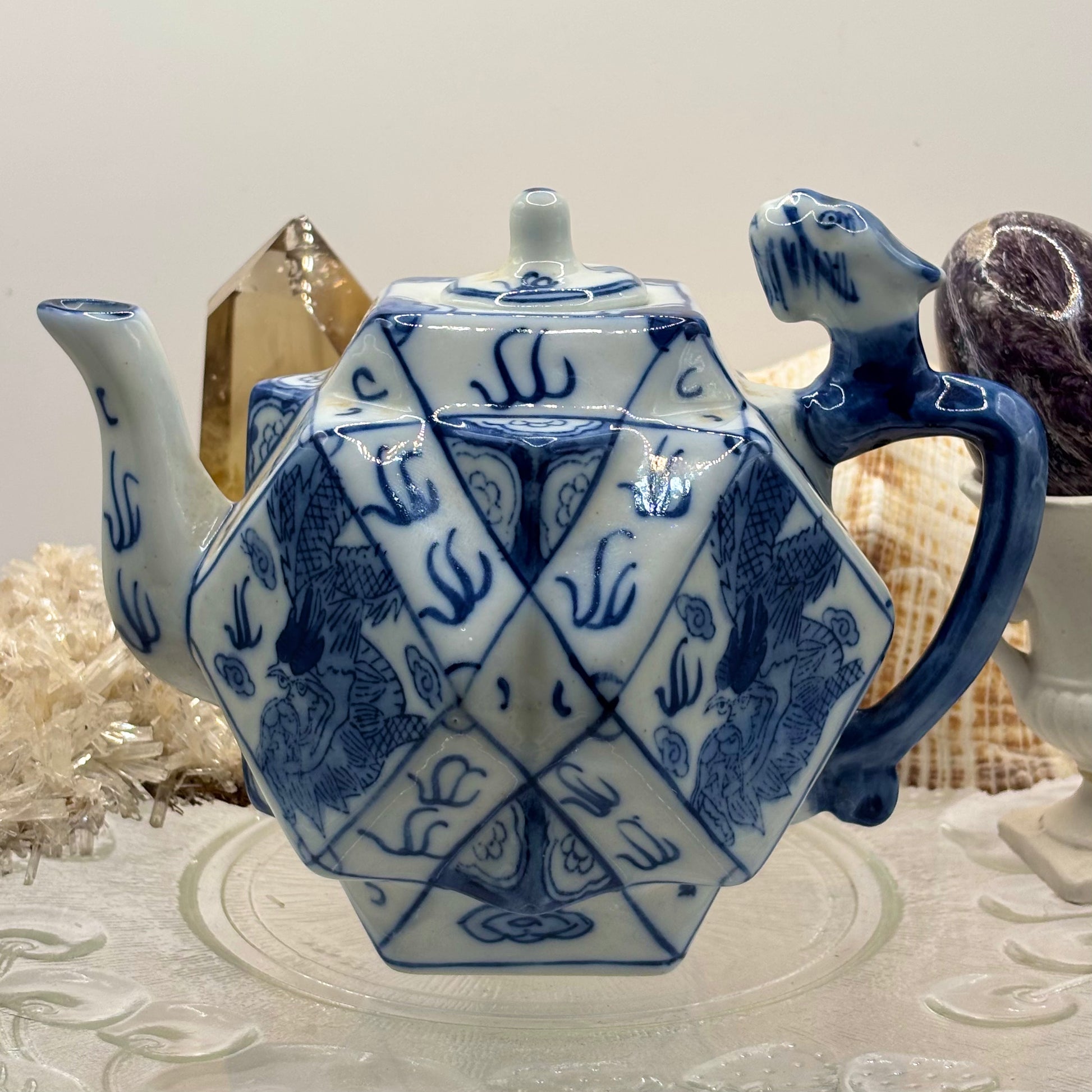 Vintage Chinese Polygon Teapot Dragon Fire Blue